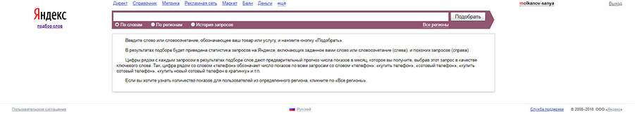 - Перейти по ссылке https://wordstat.yandex.ru/;