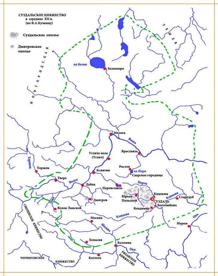 Точно известно, что Юрий Долгорукий, ставший первым князем Северо-восточной Руси, РостовоСуздальского княжества, или, согласно Василию Татищеву, Белой Руси, построил города Дмитров, Юрьев Польский, Переяславль Залесский, Городец на Волге.