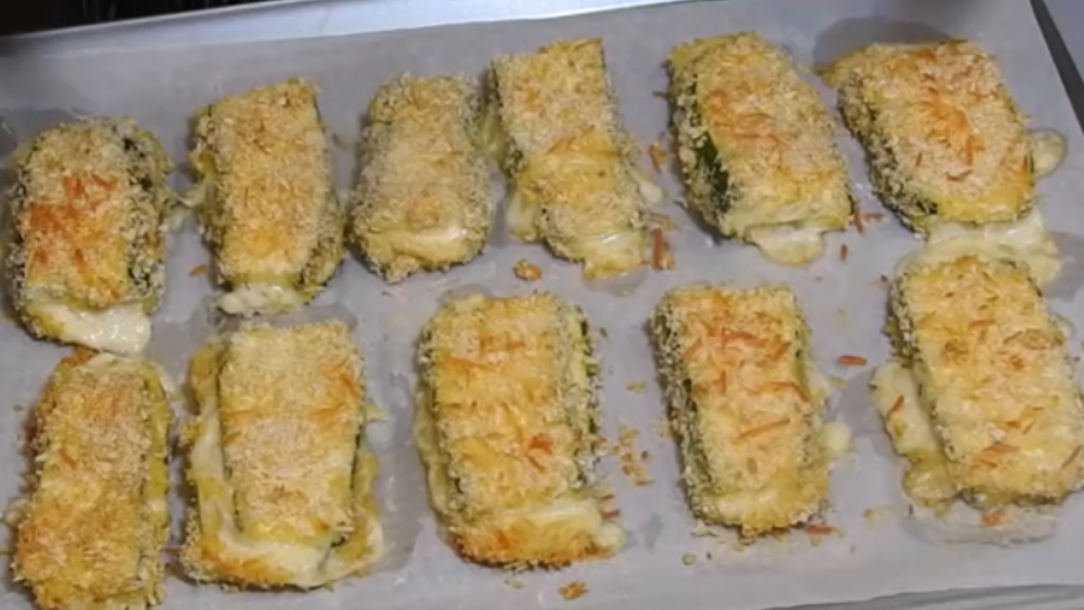 ИНГРЕДИЕНТЫ -1 кг кабачков -0,5 кг куриной грудки или филе индейки -100 гр. твердого сыра -2-3 яйца (зависит от размера) -100 гр. муки -соль, перец, специи по желанию СПОСОБ ПРИГОТОВЛЕНИЯ Подготовительная работа. Кабачки порезать длинными полосками толщиной около 1 см. Присолить и положить в дуршлаг, чтобы из них стекла жидкость. В это время порезать куриную грудку пластами( или филе индейки), толщиной примерно 2 см и слегка отбить их. Слегка присолить поперчить и порезать размером с пластинки кабачков. Сыр натереть на крупной терке. Подготовить 3 тарелки в которые разместить панировочные сухари крупного помола, а еще лучше, если подготовить самим из подсушенного и перемолотого в блендере белого хлеба. Во второй тарелке вилкой соединить яйца в однородную массу добавив к ним 1 ложку молока или воды. В третью тарелку насыпать муку. Теперь надо собрать овощные "Сэндвичи". На полоску кабачка положить кусочек грудки или индейки, сверху присыпать сыром (кто любит больше сыра, можно не
