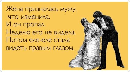 Хочу поведать вам пипец какую историю,которую мне рассказал один молодой человек.Который может быть через несколько месяцев будет разведен со своей женой. Жена уехала отдыхать в апреле месяце,приезжает и говорит ,мол я тебе изменила,я хочу подать на развод,я сама себя не могу простить,я не понимая как так произошло,вообщем я отдыхала и захотела там переспать с одним мужчиной.Он ей вроде говорит , мол ну и что такого,с кем не бывает. Мне стало смешно,ну да ничего страшного)))))Мне бы так жена сказала приехала.Я ему говорю ты в своем уме вообще.Он говорит,мол накрыло сильно меня,хотел с ней сильно быть,то есть не мог ее забыть,вычеркнуть из жизни,мол говорит дал ей второй шанс.Она бах снова говорит,извини ,но я переспала еще с одним.Он говорит, с кем?С кем ты могла переспать?Она отвечает,мол с коллегой по работе.И показывает фото интимные где она изменяет.Она снова говорит ему,я не могу так,подаем на развод. Этот парень весь на нервах,говорит как быть,не знаю.Я говорю ему,разводис