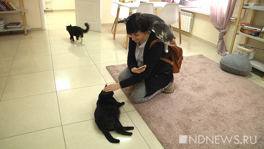 В столице Урала работает кафе под названием "Мяу тайм-кафе ". Всё очень просто , посетители приходят и проводят время с котиками . С животными можно поиграть ,погладить и если котик вам очень сильно понравится , то вы можете забрать его домой . Каждый месяц ни один постоялец этого кафе обретает дом , находя семью . Сегодня в "Мяу" живут 10-14 котов. Точное число назвать сложно ,потом что питомцев постоянно "усыновляют " и кураторы не всегда успевают на их место привезти новичков.У каждого кото- работника (коты сами зарабатывают себе на корм , общаясь с посетителями ,-уверены кураторы )-свой темперамент ,характер и история , часто непростая. К слову , первыми домой из "Мяу" уехали те ,кого через соцсети не могли пристроить по полгода.