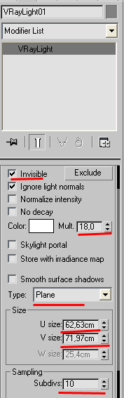 Воспользуемся 1 vray light, чтобы создать дневное освещение. Все настройки смотрите в скринах. Обратите внимание на расположение vray light внутри комнаты. По желанию, Вы можете добавить источники искусственного света, добавить sun или другие – что пожелает Ваша фантазия. Не забудьте нажать 8 и установить background color светло голубым. Настройки источника света Vray (они могут несколько отличаться в зависимости от объекта): invisible - в случае если вам надо создать светящуюся панель уберите эту галочку. Ignorelightnormals - игнорировать световые нормали. Mult - яркость света, зависит от количества источников, материалов. Type - форма источника: сфера, плоскость. Size - размер Subdiv - очень влияет на качество теней. Читайте наши следующие статьи с уроками для дизайнеров интерьера по 3ds Max!