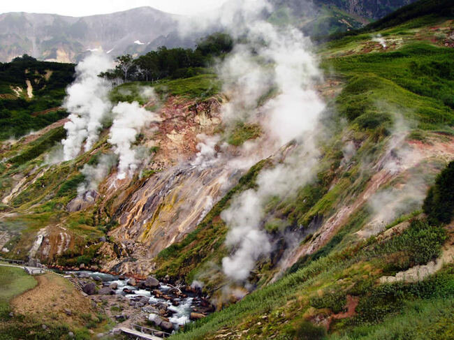 Долина Гейзеров расположена на Дальнем Востоке России, в Кроноцком государственном биосферном заповеднике, и занимает площадь около двух квадратных километров. Здесь, у слияния двух рек - Гейзерная и Шумная - находится более 20 крупных гейзеров и источников, периодически выбрасывающих фонтаны кипящей воды или пара. Это единственное в Евразии гейзерное поле и одно из крупнейших во всем мире, открытое в 1941 году, а недавно внесенное в список Всемирного наследия ЮНЕСКО. На сегодняшний день Долина Гейзеров - одно из самых посещаемых мест среди туристов, несмотря на то, что долина труднодоступна, а на её территории действует заповедный режим. С 1967 года в Долине гейзеров запрещён «дикий» туризм, а с 1977 года - туризм вообще. С 1992 года, после создания необходимой инфраструктуры, долину снова открыли для посещения туристов. Сюда организовываются вертолётные экскурсии, имеющие очень строгие требования в целях сохранения экосистемы. Самостоятельный доступ туристов в Долину Гейзеров строго ограничен.