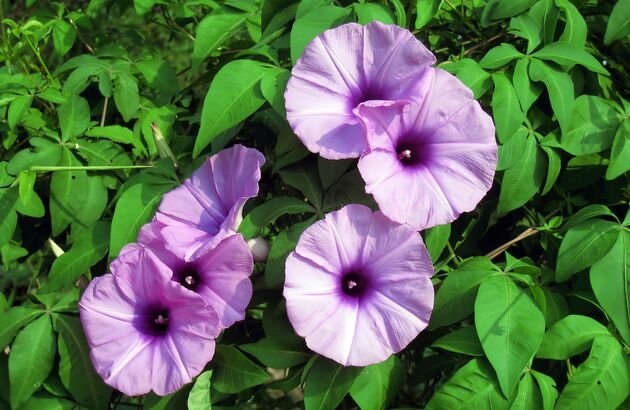 Ипомея – великолепное растение для вертикального озеленения, ее можно сажать как в саду рядом с террасой, перголой или любой другой опорой, так и на балконе. Ипомея пурпурная Самоцветы – однолетнее растение, ее быстро растущие побеги достигают в средней полосе длины 3-4 м, а в южных регионах – 7–8 м. Цветки одиночные, крупные, диаметром 4-7 см, воронкообразные, разнообразной окраски (белая, малиновая, темно-лиловая). Цветет обильно и продолжительно. Ипомея теплолюбива. Предпочитает освещенные участки, с хорошо обработанными почвами. Семена высевают в мае на постоянное место (по 2-3 семени в лунку), или выращивают рассаду. Перед посевом семена необходимо замачивать в течение одних суток. Побеги ипомеи быстро растут и легко переплетаются между собой, поэтому не следует сеять на рассаду слишком рано. Всходы появляются через 6-14 дней. Сеянцы высаживают с комом земли, выдерживая расстояние между растениями 20 см. Поливают ипомею по мере высыхания почвы, регулярно подкармливают комплексны