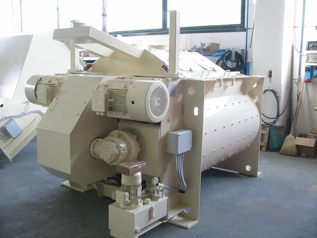Ниже описанный двухвальный бетоносмеситель поставляется компанией ООО "ТПК "Лимпекс". На изображениях представлены бетоносмесители итальянской компании CM. Двухвальные бетоносмесители пользуются заслуженным спросом во многих странах при производстве товарного бетона и бетонных смесей для изготовления тротуарной плитки, пустотных плит перекрытия, бордюрного камня и других изделий. Их популярность обусловлена несомненными преимуществами по сравнению со смесителями других видов (роторными, планетарными, гравитационными и т.п.). - в двухвальных бетоносмесителях быстро достигается высокая гомогенность смеси (до 85% за 8-10 секунд) и осуществляется ускоренная разгрузка, что позволяет существенно сократить цикл перемешивания и, соответственно, повысить часовую производительность смесителя; - при производстве жестких смесей, например, укатываемых бетонов, смесители планетарного или роторного типа загружаются на 75% объема; в отличие от них применение двухвальных смесителей позволяет изготавли