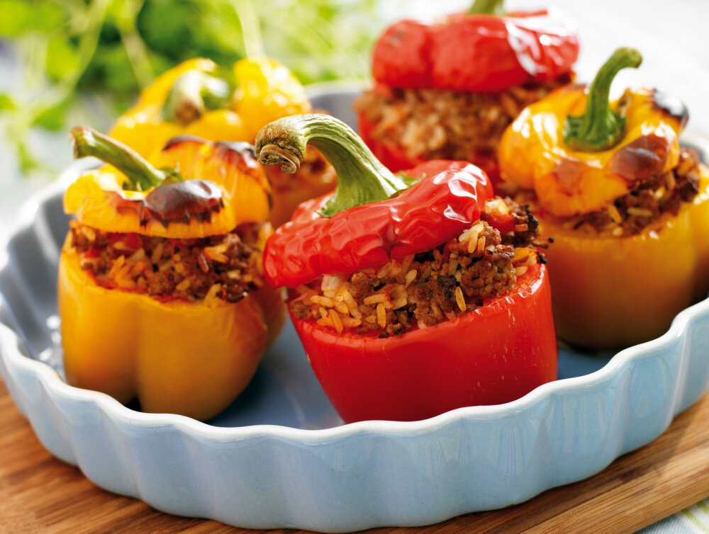 Попробовала недавно этот рецепт, и он меня просто поразил. На выходе получаем 4 порции и готовить всего пол часа. Получилась такая вкуснятина, что все четыре фаршированных перчика я съела сама!