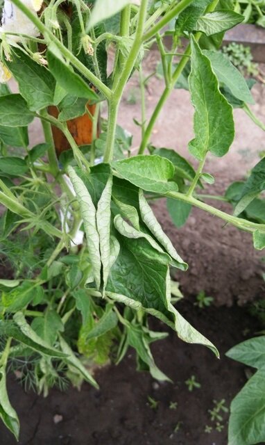 При неблагоприятных погодных условиях можно наблюдать, что листья у помидор закручиваются в «лодочки» днем, в самую жару, а вечером они становятся нормальными.