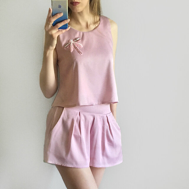 ЛЕТНИЙ КОСТЮМЧИК Размер у продавца один, подошёл хорошо Мои параметры 87/67/97 рост 177 см Цвет у продавца один Розовый Цена на момент заказа 1100 руб Магазин Alpha Cyber technology Костюм состоит из топа и шортиков Материал полиэстер , это который снаружи розовый. Костюм полностью на подкладке белого цвета. Материал подклада похож на хлопок Топ свободного кроя, к низу расклешается На груди пришита аппликация в виде стрекозы Длина топа 49 см Шортики сзади на резинке Застежек никаких нет. Крой у них свободный По бокам два кармана Длина шортиков 35 см Костюм могу советовать к покупке! Цена :USDUS $ 22.94 / piece Cсылка на товар: http://ali.pub/2jlutc by @topwomenali