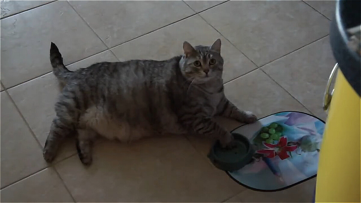 Хозяйка этого шерстяного домоседа, решила посадить его на диету, ведь кота стало слишком много, еще чуть-чуть и его лапы перестанут доставать до пола из-за мешающего живота. Пришло время жестких мер. Диета.