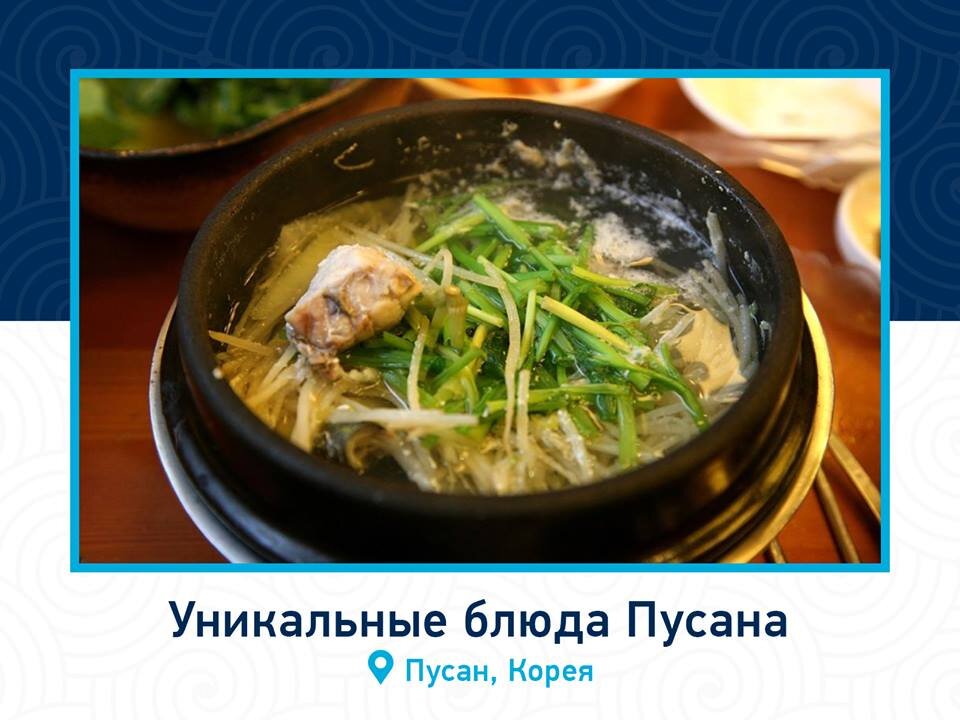 Исследуя мир, мы хотим забраться в такие уголки земли 🗺️, где есть что-то уникальное. Например, попробовать пищу, которую готовят только в одном единственном городе мира. Такая возможность будет у вас в Пусане, втором по величине городе Кореи. В Пусане есть блюда, которые недоступны в других частях Кореи: Тоннэ пхаджон - блюдо из морепродуктов с лепешкой из зеленого лука. Дешевое и популярное в Пусане блюдо. Тэгутхан– вкусный суп из трески с овощами. Рестораны, подающие это блюдо находятся на восточной стороне пляжа Хэундэ. Поккук - это суп, приготовленный из рыбы фугу, которые чрезвычайно ядовиты. В Пусане много мест, у которых есть лицензия на приготовление этой рыбы. Обычно у ресторана есть вывеска с нарисованной на ней рыбой фугу. Познавая мир, не забудьте приехать в Пусан!