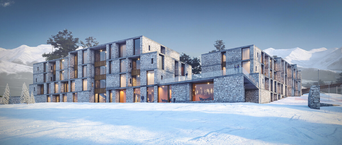 Гостиничный комплекс расположился в новой туристической деревне на всесезонном горнолыжном курорте «Архыз». Комплекс состоит из блоков эконом- и премиум-класса, а также ресторана на склоне рядом с горнолыжной трассой. Чтобы вписать проект в сложный горный рельеф, было решено разбить комплекс на блоки и расположить их под небольшим углом друг к другу. Идею синергии архитектуры и природы поддержали натуральные материалы. Так, колотый камень грубой фактуры органично вписывается в горный ландшафт. Огромные витражи позволяют любоваться пейзажами. А дерево теплых оттенков, использованное как в интерьере, так и на фасаде, добавляет уюта. Чтобы вписать проект в сложный горный рельеф, было решено разбить комплекс на блоки и расположить их под небольшим углом друг к другу. Идею синергии архитектуры и природы поддержали натуральные материалы. Так, колотый камень грубой фактуры органично вписывается в горный ландшафт. Огромные витражи позволяют любоваться пейзажами. А дерево теплых оттенков, ис