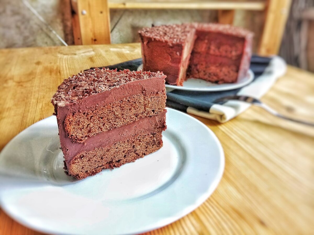 Уверен ты продашь душу за кусочек этого десерта... А что бы не пришлось жертвовать частичкой себя, покажу тебе подробный рецепт самого шоколадного торта на свете... Ингредиенты для коржей: 2 яйца 300 г сахара 200 г муки 110 г какао порошка 130 г сливочного масла 200 мл молока 1 ч.л. разрыхлителя 2 ст.л. меда Ингредиенты для крема: 300 г шоколада (темного) 200 мл жирных сливок 150 г сливочного масла (комнатной температуры) Шаг 1 Включи духовку на 180 градусов. Налей в кастрюлю молоко. Отправь туда мед, сливочное масло. На медленном огне растапливать легко. Шаг 2 Просей муку, какао - порошок. Туда же разрыхлитель. Все перемешай дружок. Шаг 3 До легкой пены яйца взбей. Шаг 4 Растопленное сливочное масло в них залей. Шаг 5 Частями смесь сухую добавляй. И хорошенько вместе их объединяй. Шаг 6 На форму тонкий масла слой. И присыпай чуть - чуть мукой. Ах кстати, форма 18 см. Поэтому я половину теста в форму влил. В духовку 25 минут. Проверка зубочисткой, как обычно. Затем все эти