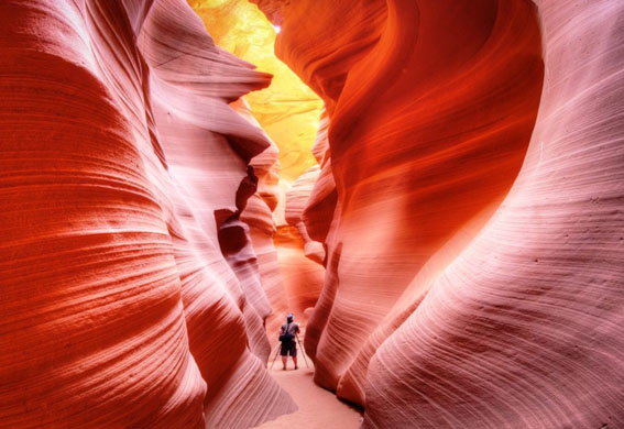 Каньон Антилопы- это невероятное место, в реальности существования которого на нашей планете несложно усомниться. Своей неземной красотой он привлекает туристов и фотографов со всей планеты. Расположен каньон на землях индейцев Навахо, в североамериканском штате Аризона. Земли принадлежат индейцам, поэтому для нахождения на их территории необходимо заплатить пошлину. Достоверно точно не известно, что бывает с людьми не заплатившими эту пошлину, но, зная индейцев, лучше не рисковать )) Своё название каньон получил из-за внешнего (вернее внутреннего) вида стен, рыже-оранжево-красных и чем-то похожих на шкуру этого животного. Все проходы, пещеры, ответвления образуются из-за вымывания мягкого красного песчаника водными потоками во время сильных ливней, которые случаются раз в год или даже несколько лет. Существует два туристических маршрута по каньону- "верхний" и "нижний". "Верхний" маршрут лёгкий, подходит для прогулки и созерцания красивых потрясающих видов. Именно он привлекает
