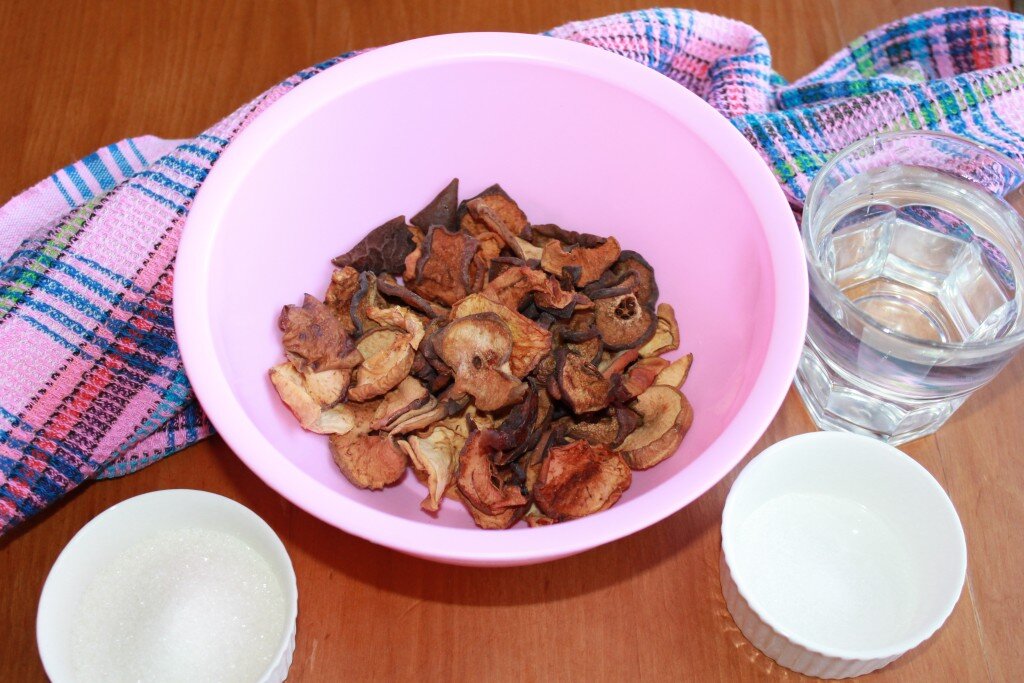 Компот из сушеных яблок – витаминный способ утолить жажду. Насыщенный фруктовый вкус напитка понравится и взрослым, и детям. На приготовление не нужно много времени. Все, что необходимо – запастись сухофруктами. Хорошо, если они домашние, высушенные в печке или летом на солнце. Но и покупные сгодятся. Просто их нужно будет более тщательно мыть. Ингредиенты Приготовление Сушеные яблочные кусочки перебираем. Удаляем семечки и прочий мусор. В кастрюлю наливаем воду, накрываем крышкой и ставим на сильный огонь. Дожидаемся закипания. Сухофрукты заливаем холодной водой и хорошо промываем, ополаскивая каждый кусочек. Воду сливаем и заливаем второй раз. Полощем до тех пор, пока вода не будет чистой. В закипевшую воду в кастрюлю выкладываем вымытые яблоки. Накрываем крышкой и дожидаемся закипания. Кроме яблочек, в компот можно положить сушеные груши или курагу. Выйдет более богатый вкус. А груши сделают напиток еще насыщеннее и золотистее. Затем крышку снимаем, добавляем сахар, перемешиваем.