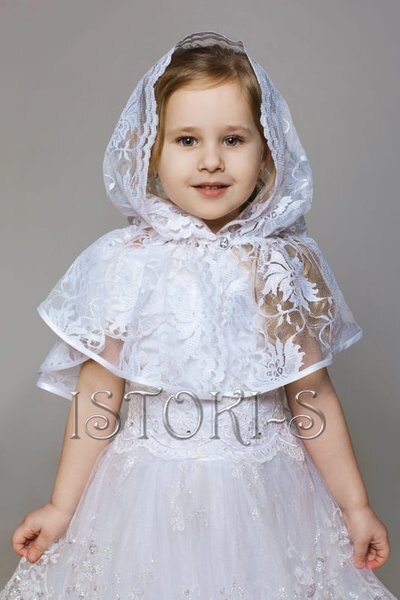 Белый платок Vanda для девочки Купить белый платок Vanda для девочки из гипюра с цветочным орнаментом расшитым серебряной нитью, с отделкой широким кружевом обрамляющим лицо и атласной бейкой по остальным краям платочка, имеет застежку в виде большого кристалла Svarovski. Получив в подарок или выбрав самостоятельно такой аксессуар девочка обязательно почувствует себя маленькой принцессой. Куда девочка может носить платок на голове? Девочка может носить платок на голове, когда вся семья отправляется в храм, на прогулку в парк, на праздники. Приучение малышки к красоте, особенно если она представлена в её одежде и аксессуарах поможет воспитать вкус и стиль с малых лет. Но приучать нужно не только правильному подбору одежды, а так же и выбору покупки для себя. Наша лавка поможет Вам и Вашей малышке с легкостью совершить правильный выбор нарядного платочка. Белый платок Vanda для девочки может стать первой ценной и очень стильной покупкой! ХАРАКТЕРИСТИКИАртикул: V-001