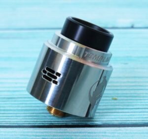 Упакована дрипка в привычный тубус от Augvape Открыв тубус нам в руки сразу выпадает Templar RDA. В диаметре 24 мм. Высота 26,6 мм. 810 дриптип из дельрина. 510 коннектор. Изготовлена из нержавеющей стали. На нижней части базы красуется логотип компании и серийный номер продукта. Купол имеет почти сферическую обработку. Для удобства и с целью правильной установки боковой юбки на внутренней кромке сделаны два среза, которые одеваясь на базу располагают отверстия обдувов прямо на уровне с койлами. На верхней части дрипки, он же купол, имеются ступени, которыми можно регулировать обдув. Настройка обдува в Templar RDA очень тонкая. От полностью открытого до полностью закрытого есть еще уйма отверстий. Такая регулировка позволит выжать из дрипки наиболее оптимальный для вас вкус. На куполе установлен внутренний оринг под 810 дриптип. На боковых стенках имеются углубления, которые должны помочь вам с регулировкой обдува. Так же есть гравировка названия, Templar. База имеет очень необычное