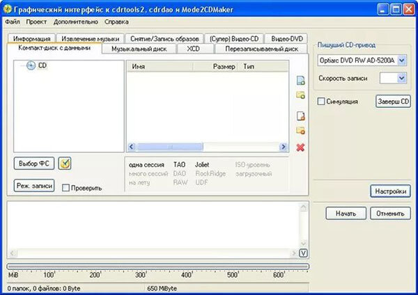 На смотря на свои малые размеры программа CDrtfe обладает всем необходим, что бы записывать информацию на компакт диски в том числе и формата CD-Plus. Так же при помощи данной программы можно извлекать и сохранять из Audio-CD файлы таких форматов, как WAV, MP3, OGG, FLAC.