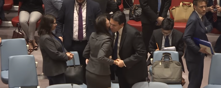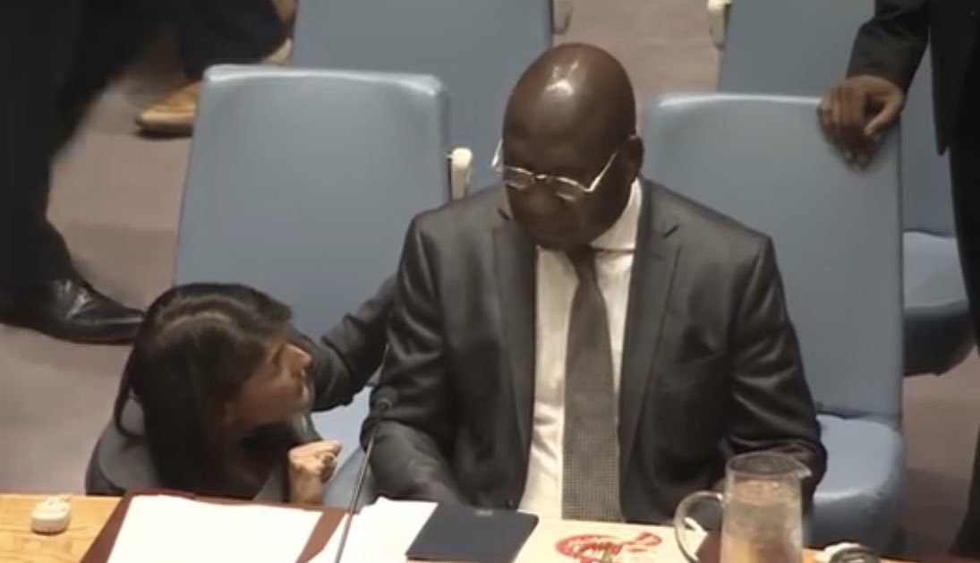 С марта израильские солдаты застрелили по меньшей мере 121 Палестинца в секторе Газа, однако в Совете Безопасности ООН по вине США провалились две резолюции об эскалации насилия на границе между Газой и Израилем. Аль-Джазира выпустило сумашедшее видео, на котором представитель США в ООН Никки Хейли, убалтывает одного за одним посланников некоторых стран поддержать резолюцию США, неосуждающую убийство израильскими солдатами палестинцев. На видео, в одном из моментов, эта престарелая американская белая женщина, невзирая на американские заморочки о превосходстве белых и о делании америки снова великой, упрашивая одного из представителей черного континента, ничтоже сумняшеся встала на колени.