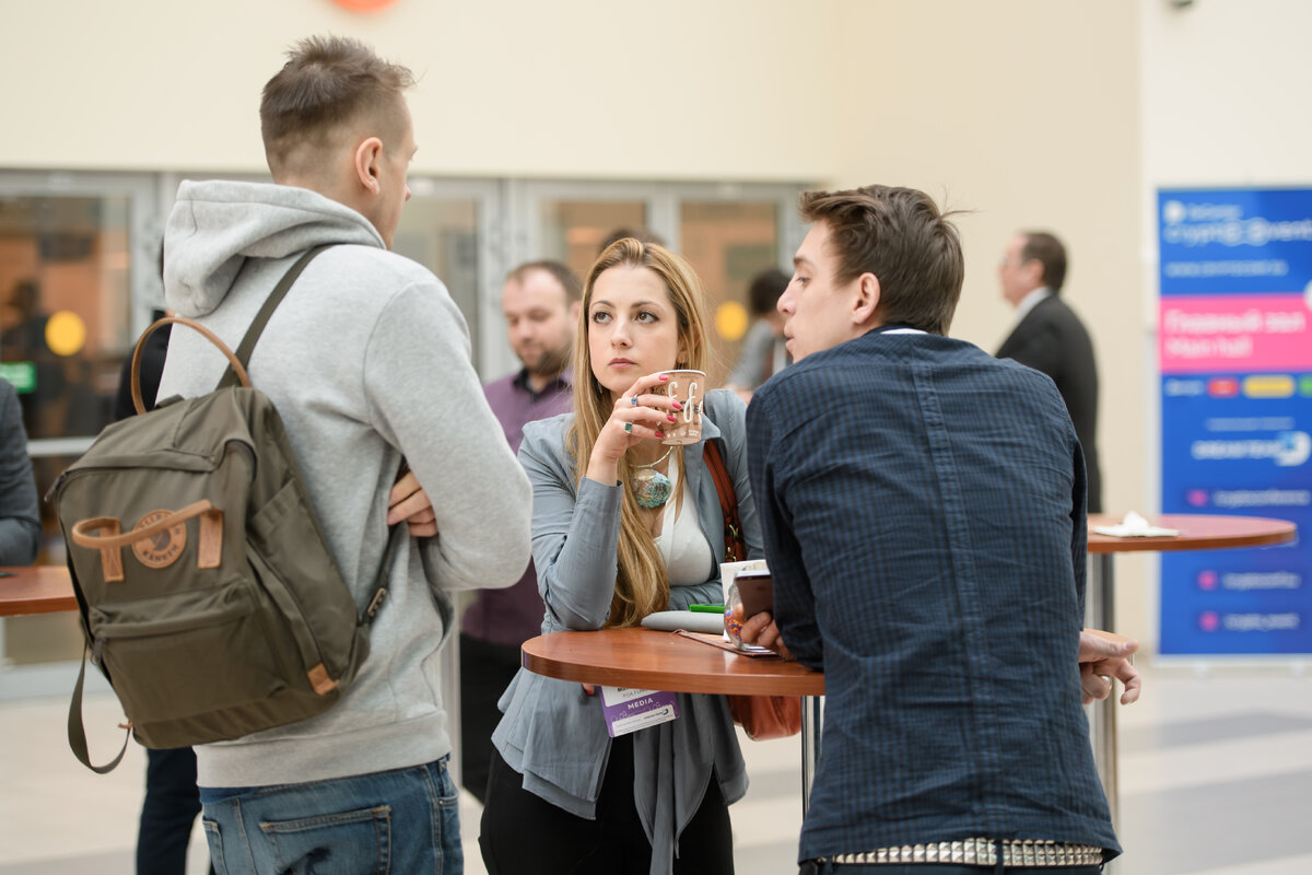 За последние 7 месяцев мы провели 7 бизнес-мероприятий по блокчейну и, поверьте, знаем, как “выжать” из мероприятия максимум, а как - уйти с недовольным лицом. Делимся “вредными советами”, прочитайте и сделайте наоборот. Не берите с собой визитки Представьте ситуацию: вы знакомитесь с крупным инвестором или владельцем масштабного бизнеса. Если он человек влиятельный, значит сам без труда сможет найти ваши контакты, когда они потребуются, или попросит об этом помощницу. Не навязывайтесь и сами не просите контактов! Гордость в наши времена большая редкость, новый знакомый это оценит. Если у вас нет визиток в принципе и вы не напечатали их к конференции - что ж, вы молодец, и лицо сохранили, и 500 рублей сэкономили. На кофе-брейке занимайте свободный столик! Еда - это очень интимно, только невоспитанный человек не знает фразы “Когда я ем - я глух и нем”. Поэтому сразу, лавируя между кофе-машинами и круассанами, направляйтесь к свободному столику в самом дальнем углу, чтобы вас никто