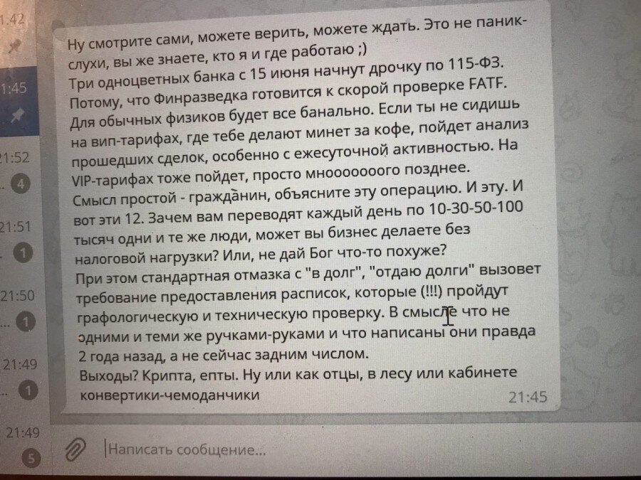 Забавный скриншотик про финансовую разведку и скорый кирдык переводам между картами
