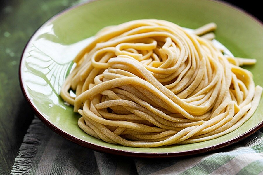 Ингредиенты: 300 г – муки 2 шт – яйца 50 мл – воды щепотка соли Приготовление: Чтобы не сыпать лишней муки возьмите кусок х/б ткани и в центр насыпьте муки. Соберите края ткани вместе и перевяжите веревкой или зафиксируйте резинкой. Таким тампоном можно подпылять тесто похлопывая им по поверхности. Пропорцию яиц и воды можно регулировать. Больше яиц – богаче вкус, больше воды – мягче лапша. Где я беру соусы, пасты, приправы … для блюд китайской кухни Приятного аппетита! Если вам понравилось, поставьте 👍, чтобы понимать предпочтения участников канала и быть более полезным. Если вам интересна данная тема подпишитесь на канал "Китай на вкус".