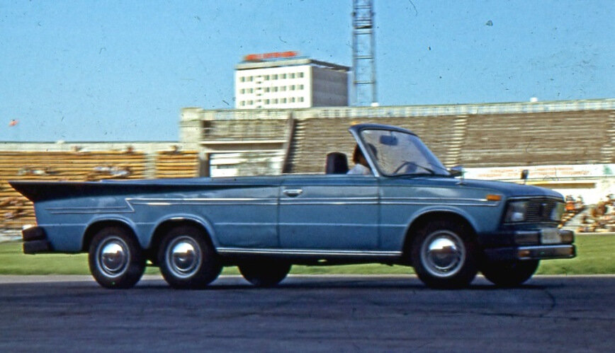В 70- и 80-е автоспорт играл значительную роль в Советском Союзе. Каждый автомобильный завод имел собственную гоночную команду. У Волжского завода было сразу несколько направлений, в котором развивались заводские гоночные команды. Одним из направлений была каскадерская команда «автородео», образованная в 1979 году. Профессиональные каскадеры творили чудеса на советских и зарубежных площадках и делали это на автомобилях «Жигули». Но «автородео» – это не только спорт, но и шоу. Поэтому заводской команде понадобился какой-нибудь эффектный автомобиль. Им стал фаэтон, созданный из обычного седана ВАЗ-2103 путем удаления крыши. Автомобиль смотрелся необычно, но хотелось чего-то больше. Поэтому в начале 80-х сделали удлиненный 3-осный фаэтон. Он был рассчитан сразу на восемь человек и имел три ряда сидений. Лимузин создали из обычной «тройки» путем удлинения кузова и добавлением дополнительной оси. Сзади разместили площадку для стоящих каскадеров. В отличие от предыдущего «короткого» фаэтона
