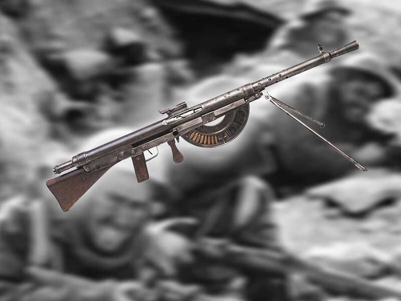 Это оружие придумал и создал французский полковник Шоша в 1915 году. Механизмы пулемёта были настолько просты, что их собирали даже на велосипедных фабриках. Но в тоже время сам пулемёт был сложен в эксплуатации.