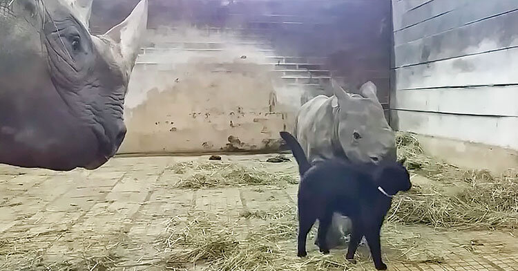 Маленький носорог завёл себе необычного друга: этот трогательный ролик заставит вас таять от умиления
