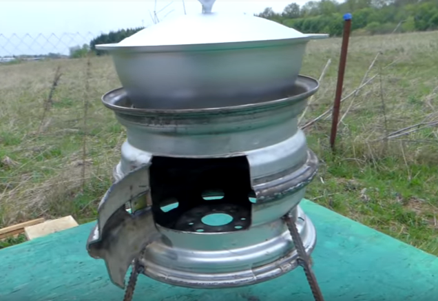 Не выбрасывайте старые автомобильные диски. Из них можно сделать полезные вещи для дачи или для выезда на природу. Сегодня из дисков будем делать печку - подставку для казана. А в казане можно приготовить не только плов, но и другие блюда - шурпу, суп, подливку из мяса или курицы. Очень удобно также варить варенье на открытом воздухе, не заходя в дом. Удобно делать в толстостенном казане икру из баклажан или кабачков, перца, просто овощную икру. Вкус получается отменный! Вот печка - красавица в готовом виде. Описание процесса изготовления: Берем два старых автомобильных диска. Очищаем их от грязи и пыли болгаркой с насадкой щеткой. После зачистки дисков ставим их ровно друг на друга и свариваем между собой. После этого нужно молотком отбить лишний шлак и нагар. Проходим по шву металлической щеткой и вновь проверяем качество сварки. Если где- то есть изъян, подвариваем. Теперь нужно поставить петлю для дверцы. Делаем разметку под нее. Вырезаем отверстие. Петля должна хорошо сесть