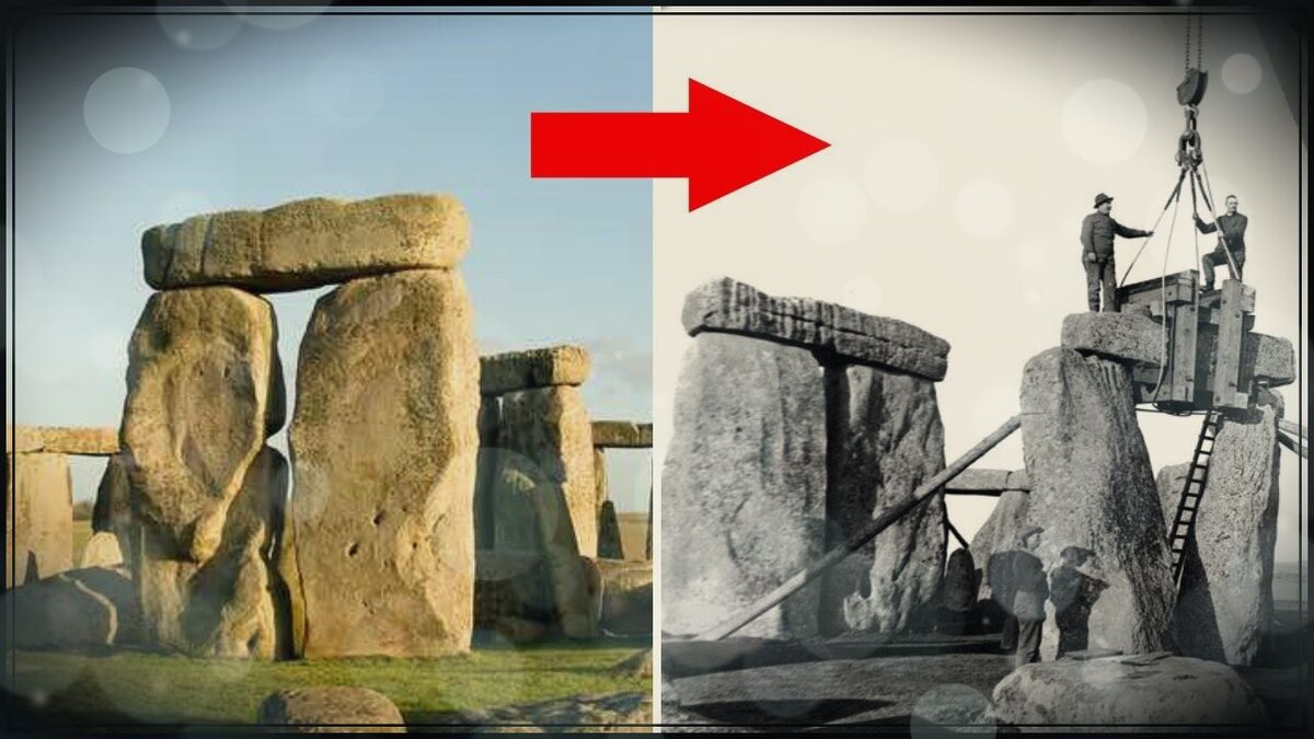 Изображение которое вы видите, показывает Стоунхенж в 1877 году с камнями наклоненными друг на друга.