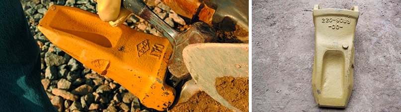 Рассмотрим другой подход производителей при выборе поставщика режущих элементов. Речь о применении распространенных систем, на которые истек срок действия патента. Например, это системы Caterpillar J-series (самые распространенные коронки из этой серии — 1U3302, 1U3352) и зубья для JCB 3CX/4CX (53103205 и их усиленный вариант — 332/С4388). Так, Компания «Традиция-К» комплектует свои ковши зубьями, коронками и адаптерами производства NINGBO LINGFENG. На отечественном рынке компания более известна своими брендами — NBLF и GETLF. Отличительной особенностью данного производителя является строгая система входного контроля, в качестве сырья запрещено использовать металлолом.