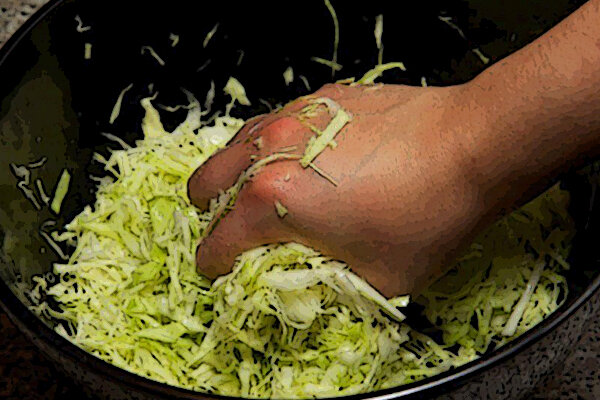 Капустный сок и перец – лучшее средство для чистки крови — Да невозможно убить у себя всех паразитов, вирусов и прочих нахлебников! – спорила бабушка с соседкой. – Они же связаны с клетками нашего тела, и спрячутся от любых антибиотиков. Нужно просто создать в организме правильную среду – и они уйдут сами или умрут от тоски. — Правильная среда – это правильная еда! Вот мы делаем целебный салат из свежей капусты: порубали капусту, перемешали, добавили чуть соли и много красного перца и руками – обязательно руками – разминаем его, выжимая из капусты живой, ферментированный, сок. Никакая соковыжималка не сделает такой натуральный сок – металл разрушает ферменты! Если помять не сильно – то получаем салат «в собственном соку», целебный, даже не считая, что капуста – это полезная клетчатка, «щетка» для кишечника. Но можно пойти и дальше – ведь молодая капуста очень сочная, и из нее можно за 3-4 подхода (помять, дать полежать, опять помять) выжать стакан-другой сока, невероятно целебного. Кап
