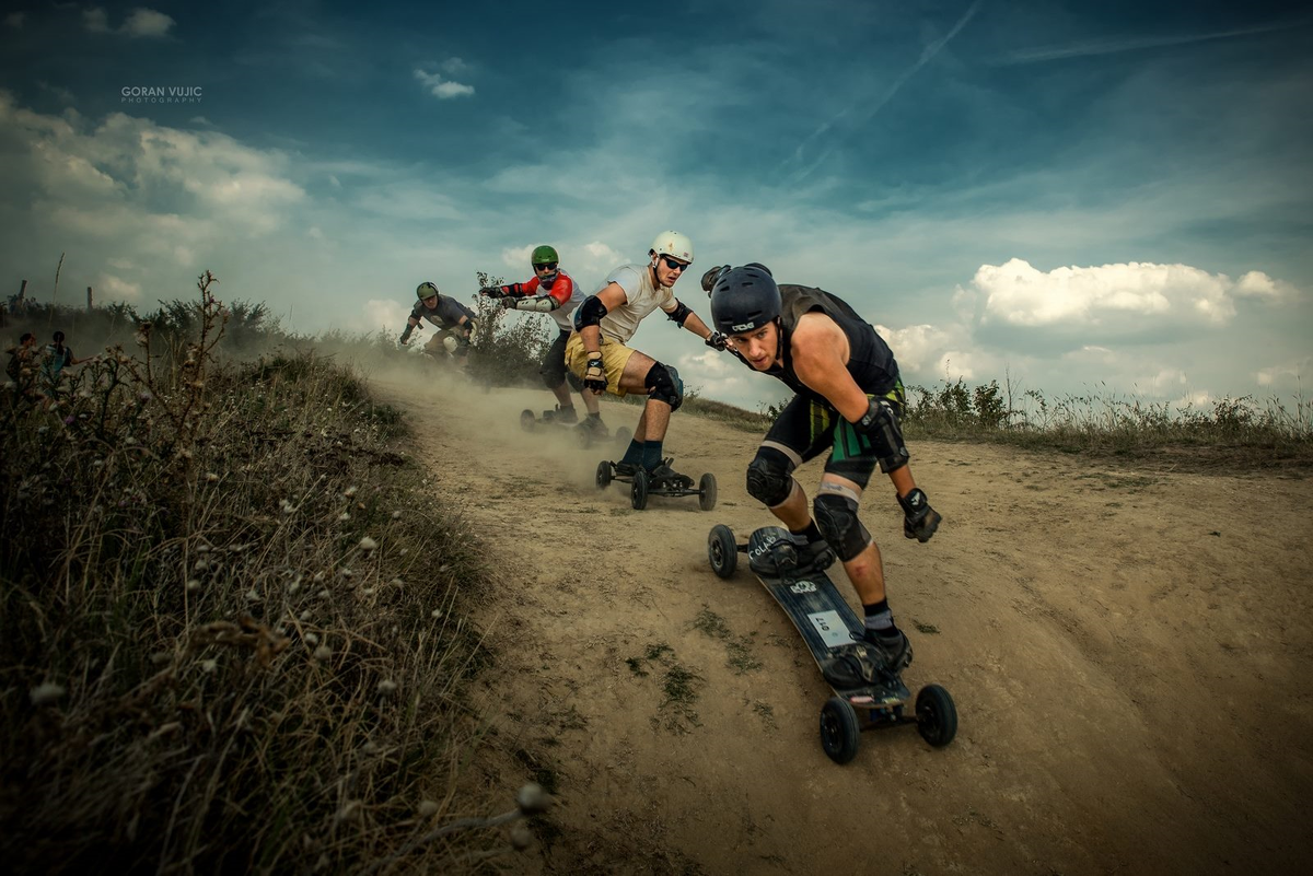 Самая большая печаль для любителей сноубординга в том, что либо ждать зимы, либо копить денежку на поездку в горы..., стойте, остановитесь, теперь проблема решена и для вас! Зачем ждать наступления снегов или копить деньги на поездку к вершинам, если можно просто модернизировать сноуборд? Вот два жестких фанатика досок и умельцы на все руки так и сделали. Патрик МакКоннели и Джейсон Ли, четыре очумелые ручки, которые к сноуборду привинтили большие колёса и ву а ля. Их изобретение увидело свет в 1993 году. Тогда новая доска называлась All Terrain Board, и только позже её начали называть привычным для нас маунтинбордом. В конструкцию этой доски входят довольно большие колёса, которые в диаметре достигают 20 сантиметров, что равняется 8 дюймам. Встречаются модели, в которых колёса имеют диаметр около 25 см, или 10 дюймов. Так как колеса надувные, можно регулировать в них давление, более мягкие, для небольшой скорости, понакаченнее, для более резвых. Кроме этого доска располагает пр