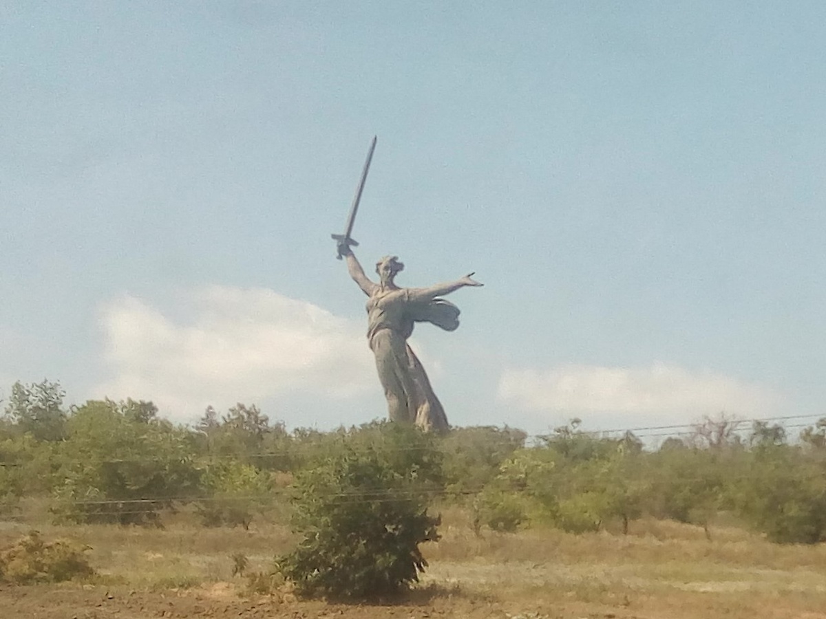 С утра ждали Родину-Мать. За два часа до прибытия в Волгоград уткнулся в окно, пытаясь из-за горизонта в первые же моменты увидеть очертания знаменитой скульптуры. Приготовил видеосъёмку. К сожалению, очень рано попросил маму начать снимать, прямо на въезде в город. И когда подъезжали к статуе, пятиминутный лимит съёмки на телефон был исчерпан. Спасибо соседу за то, что поделился фото! На вокзале в Волгограде разрешили открыть дверь "моего" тамбура, через который меня поднимали в вагон. И я подышал волгоградским воздухом. Очень тронуло, когда проходящие по перрону полицейские поинтересовались у меня, всё ли в порядке, не нужна ли мне помощь. Всё было в полном порядке! Тёплый день, хорошее настроение. После Волгограда пошли бескрайние поля. Поразила цветущая картошка в самом начале июня. Где-то лежало свежескошенное сено. В середине дня небо немного нахмурилось и появилась радуга. А это участок коридора поезда для колясочников. Внезапно осознал, что фото купе показал, а вот коридор не