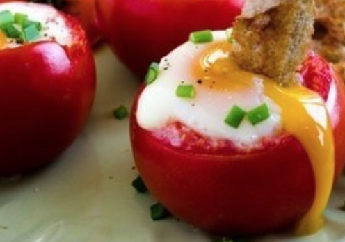 Готовим простое, но интересное блюдо. Яйца в помидорах. Можно это сделать на завтрак. Будет не только вкусно, но и красиво! Что нам нужно на 1 порцию (1 помидор): - помидор - 1 ч ложка сливочного масла - 1 яйцо - зеленушка, например, зеленый лук - соль, перец по вкусу Берем помидоров для готовки столько, сколько нужно. Готовим: Духовку нагреваем до 200 градусов. У помидоров срезаем верхушки с "попкой". Вынимаем всю середину. Удобно вынимать ложкой. В каждый помидор кладем масло и вливаем яйцо. Солим и перчим по вкусу. Противень застилаем бумагой для выпечки и выкладываем помидоры. Выпекаем минут 20. Украшаем зеленушкой. Подаем помидоры горячими. Можно еще поджарить кусочек хлеба. Или запечь вместе с помидорами. Оригинал статьи размещен здесь - Покашеварим ПОДПИСЫВАЕМСЯ НА КАНАЛ ЯНДЕКС ДЗЕН ПОКАШЕВАРИМ ЗДЕСЬ