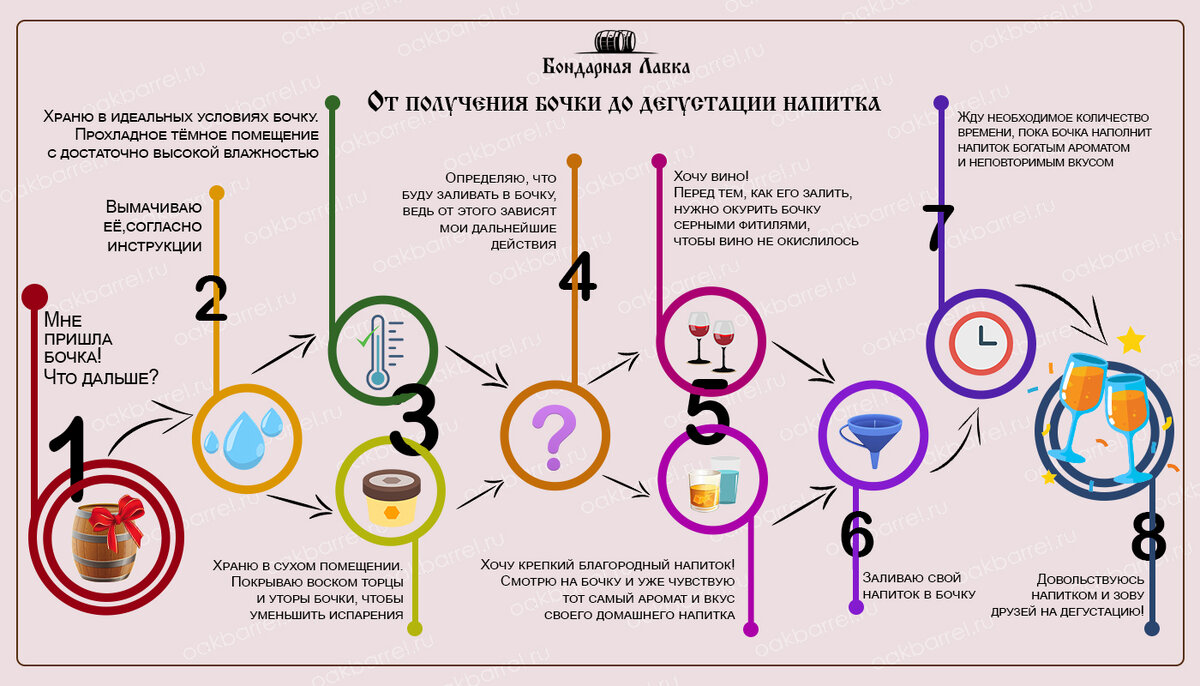 Мы подготовили для вас краткую и наглядную инструкцию, что нужно сделать с бочкой, чтобы получить вкуснейший напиток :)