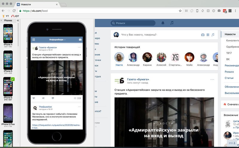 Эмуляция смартфона в браузере