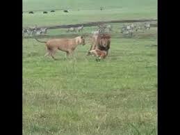 Собака,принадлежащяя местному племени,случайно набрела на отдыхающих льва и львицу.Собака,как оказалось,была не из робкого десятка....