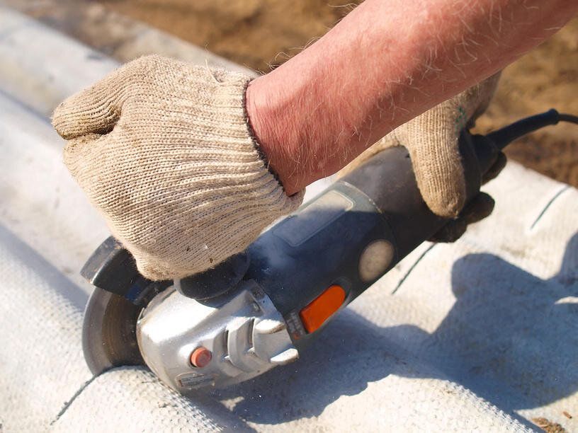 Не многие знают как правильно и эффективно резать шифер. Обычно его применяют в основном для покрытия крыш, ведь этот материал не такой дорогой, как многие другие и в тоже время прилично долгое время может прослужить. Мой знакомый покрыл дачный дом шифером еще 10 лет назад и до сих пор и по сей день не знает проблем с протеканием крыши. Так как шифер очень хрупкий материал, его нужно уметь правильно резать. Иначе не получится нормально покрыть крышу, ведь куски шифера будут не ровными. Чем же лучше всего резать шифер? Самым практичным способом является применение болгарки на низких оборотах. Конечно можно обойтись и ножовкой, но это очень долго и муторно. И не факт что получиться ровный кусок. И так, прежде чем резать шифер нужно определиться с размерами нужного куска. Далее при помощи строительной линейки чертим линию отреза. Лучше всего чертить маркером черного цвета. Теперь место отреза нужно обильно полить водой. дело в том, что структура шифера в мокром состоянии лучше подвергае
