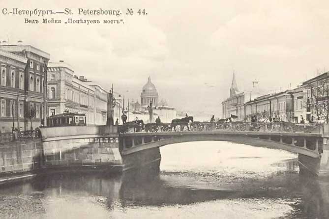 Что может быть романтичнее, чем завершить свидание поцелуем на мосту Поцелуев Мост Поцелуев является одним из старейших мостов Санкт – Петербурга. Изначально он был пешеходным и деревянным . Построили его в 1738 году и назывался Цветным. Через 30 лет его уже перестроили для транспорта. А в начале 20 века на нем проложили трамвайные пути. Но почему же Цветной мост переименовали в такое романтическое название как Поцелуев? Одна из легенд, гласит, что в 17 веке, когда Петербург не был ещё таким большим и его границы заканчивались на реке Мойки, на мосту прощались граждане, кому надо было уезжать из города по разным причина. По второй версии, назвали из-за того, что мост идёт к воротам Гвардейского флота, и на мосту моряки прощались со своими возлюбленными. Ещё одна версия заключается в том, что там целовались влюблённые, которые скрывали от посторонних свои отношения. Но это конечно же все мифы и легенды, на самом деле мосту дали название в честь купца с фамилией Поцелуев. Который откр