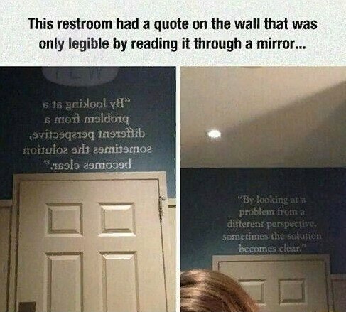 В этом туалете на стене надпись, которая читается только через зеркало