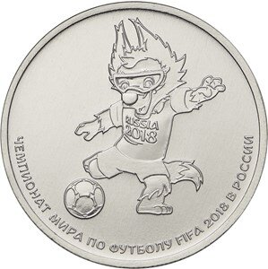 Моя коллекция пополнилась 25 рублевой монетой с изображением талисмана Чемпионата мира 2018 по футболу. Приобрёл монету на аукционе всего за 40 рублей.