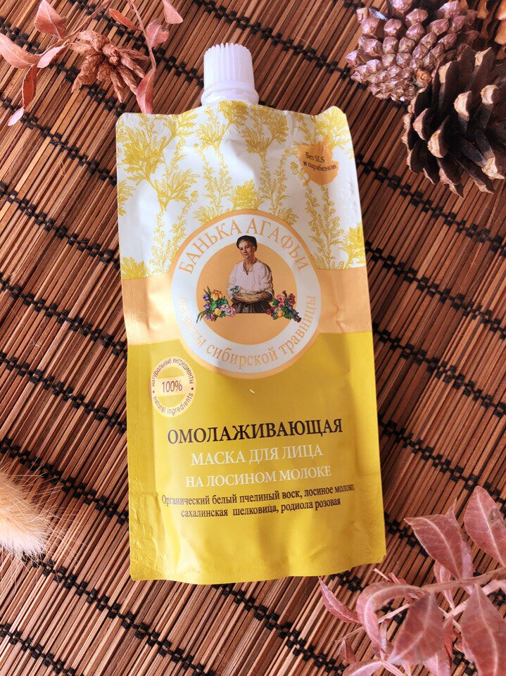 Омолаживающая маска для лица «Банька» от Бабушки Агафьи Давно хотела попробовать что-нибудь из серии косметики от Бабушки Агафьи. И мне как раз подвернулся такой случай, когда в «Ашане», делала покупки, увидела эту маску за 38 руб. и решила рискнуть. Отзывы о ней в интернете нашла самые разные, подумалось, попробую и я, бюджетный уход для лица не помешает. Уже на упаковке я заметила заманчивую надпись, что в составе только 100% натуральные ингредиенты. Далее там были упомянуты – лосиное молоко, пчелиный воск, сахалинская шелковица и родиола розовая. Интересный набор компонентов, если действительно все так и есть, как пишет производитель, то эффект должен быть просто потрясающий! Упаковка, конечно, не впечатлила, но за такую цену я не хотела быть сильно привередливой, главное результат. Использовала я эту маску через некоторое время после очищающего пилинга, который я делаю раз в две недели где оставалось некоторое раздражение, (чаще не могу, так как кожа раздражительная), и, надо