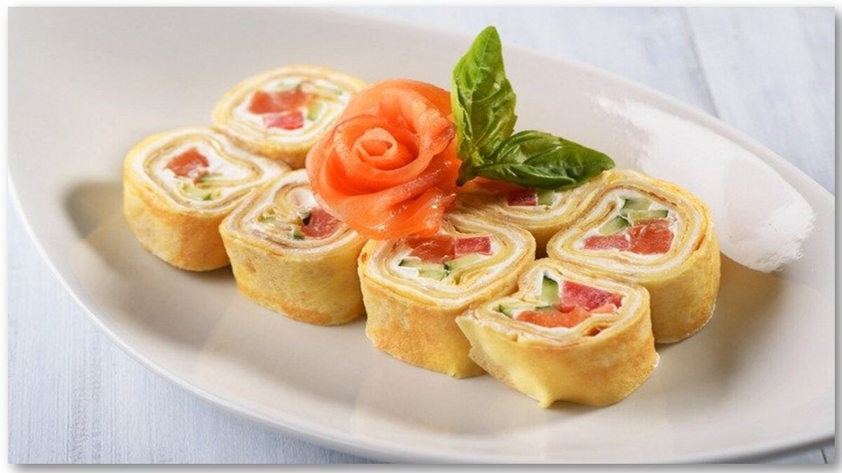 Ингредиенты: ❦ укроп (свежий) ❦ малосольный или маринованный лосось-300 г ❦ сыр сливочный (плавленный)-150 г Ингредиенты для блинчиков: ❦ сахар-стол.л. ❦ соль ❦ мука-150 г ❦ молоко-200 мл ❦ яйца-2 шт ❦ масло растительное-2 стол.л. ❦ разрыхлителя-0,5 ч. л. Приготовление рецепта: 1)Готовим блинчики:взбить с сахаром и солью яйца,молоко,муку(с разрыхлителем),вливаем масло и размешиваем так,чтобы не было комков. 2)Выпекаем блинчики ,ставим остудить и нужно смазать их сливочным сыром. 3)Лосось нужно нарезать тонкими полосочками и разложить их необходимо сверху сыра. По желанию добавить зелень,огурцы. 4)Блины сворачиваем плотно в рулетики и ставим в холодильник на 30 мин. 5)Нарезаем каждый рулетик кружочками и украсить сверху веточками зелени. Рулеты готовы! Приятного вам аппетита! ❦ ❦ ❦ ❦ ❦ ❦ ❦ ❦ ❦ ❦ ❦ ❦ ❦ ❦ ❦ ❦ ❦ ❦ ❦ ❦ ❦ ❦ ❦ Подписывайтесь на "Вкусняшку",чтобы в вашей ленте было много рецептов! Наградой для нашего канала будут лайки, репосты и ваша подписка.