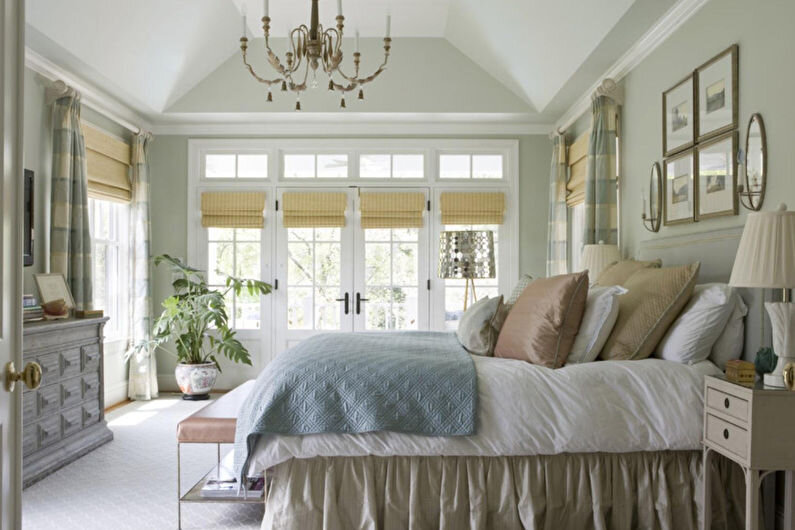 Не существует более естественного цвета, который в интерьере спальни положительно воздействует на состояние человека. Также, в качестве отделки салатовый цвет служит прекрасным фоном для растений и цветов, а без растений трудно представить интерьер в стиле прованс.