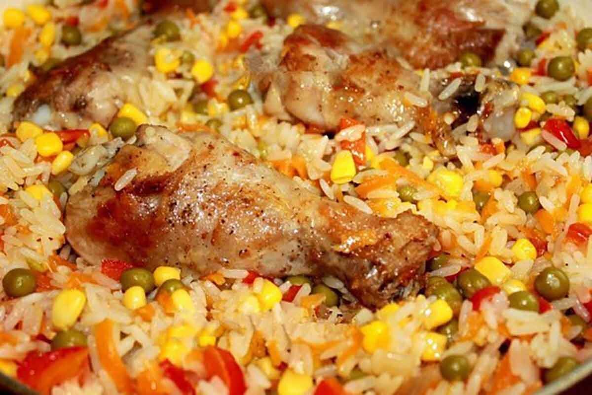 Куриные голени с рисом и овощами