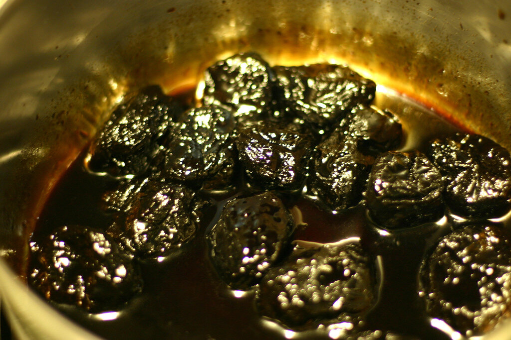 Это очень вкусный десерт. Сочетание шоколадного вкуса пряников, сметанного крема, орехов и чернослива – беспроигрышное. Ну а то, что торт не требует выпечки, значительно повышает его рейтинг. Плюс практически безграничные возможности экспериментировать с начинками. Это могут быть и консервированные персики, и ананас, и бананы, и вишня, и… дальше сами. А мы приготовим мой любимый вариант – с черносливом и грецкими орехами. Нам понадобится: 500 г шоколадных пряников 700 мл сметаны жирностью 20-25% 3 столовые ложки сахарного песка 300 г чернослива без косточек Полстакана измельченных грецких орехов Разъемная форма Пищевая пленка (не съедобная!! пищевая) Важно! Все пропорции здесь очень относительные. Все зависит от размера формы (у меня 22 см), выбранной начинки, вашего вкуса, марки сметаны в конце концов. Например, если в начинке вишня, то сметанный крем нужно делать послаще, а с ананасами все наоборот - их сладости хватит на двоих. Чернослив моем и замачиваем в горячей воде. Если торт