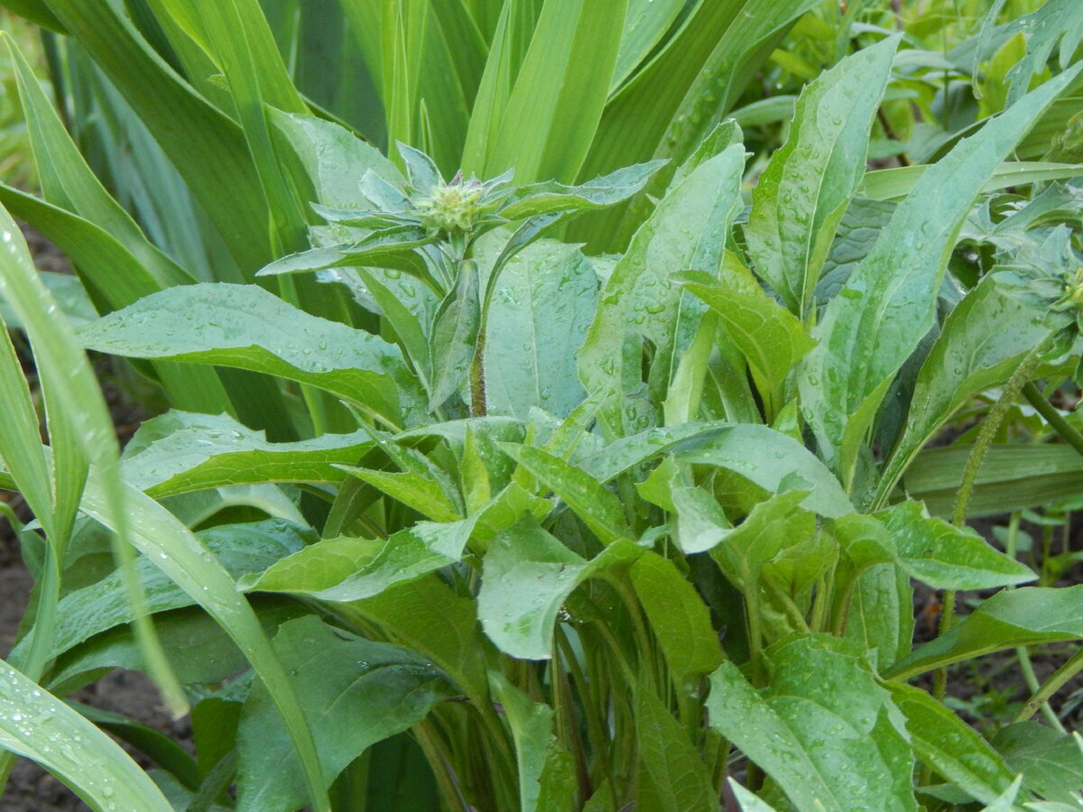 Сегодня я обнаружила, что те эхинацеи, которые я не пересаживала и не делила весной, уже выпустили цветоносы: В целом эхинацея считается растением лёгким в выращивании и благодарным даже за самое небольшое внимание, которое ему уделяют. Солнечный участок, прополка, вечерний полив в засушливую погоду - это тот минимум, который требуется эхинацеям. Но всё же я стараюсь заботиться о них немного больше, особенно перед цветением. Почва, на которой растут мои эхинацеей, суглинистая, поэтому я покармливаю их дважды за сезон - весной, когда появляются всходы, и как раз перед цветением. Сейчас я использовую комплексное удобрение с пониженным содержанием азота и золу. Погода стоит сырая и лишний полив эхинацеям ни к чему - я просто прорываю бороздку вокруг каждого растения, засыпаю в неё удобрение и закапываю. Избыток влаги в холодное и дождливое лето может привести к появлению мучнистой росы и тогда придётся удалять зараженные листья и стебли, обрабатывать растение от болезни предназначенным