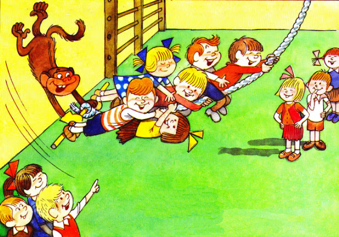 Советские детские книги были неплохо иллюстрированы и зачастую имели красивое и привлекательное для ребенка оформление. Вот, например, для совсем маленьких выпускали книжки-ширмы, которые сейчас ошибочно называют "гармошками". Ширмы представляли собой 5-8 страничек из плотного картона, скрепленные между собой тканной полоской. Текст и картинку печатали как на самом картоне, так и на бумажном листе, который приклеивали на створку ширмы. Книжками-гармошками называли те издания, у которых страницы также открывались наподобие ширмы, но обложка этих книг чаще была фигурной (хотя встречались и классические прямоугольные обложки), а текст печатался на сложенной гармошкой бумажной ленте, первая и последняя страница которой приклеивалась к створкам обложки. Книжки-вертушки представляли собой две или три окружности, которые соединены по центру и при вращении этих окружностей происходит смена иллюстраций. Какие-то книги делали с отверстием-окошком в верхнем круге и картинками на нижнем. Когда н