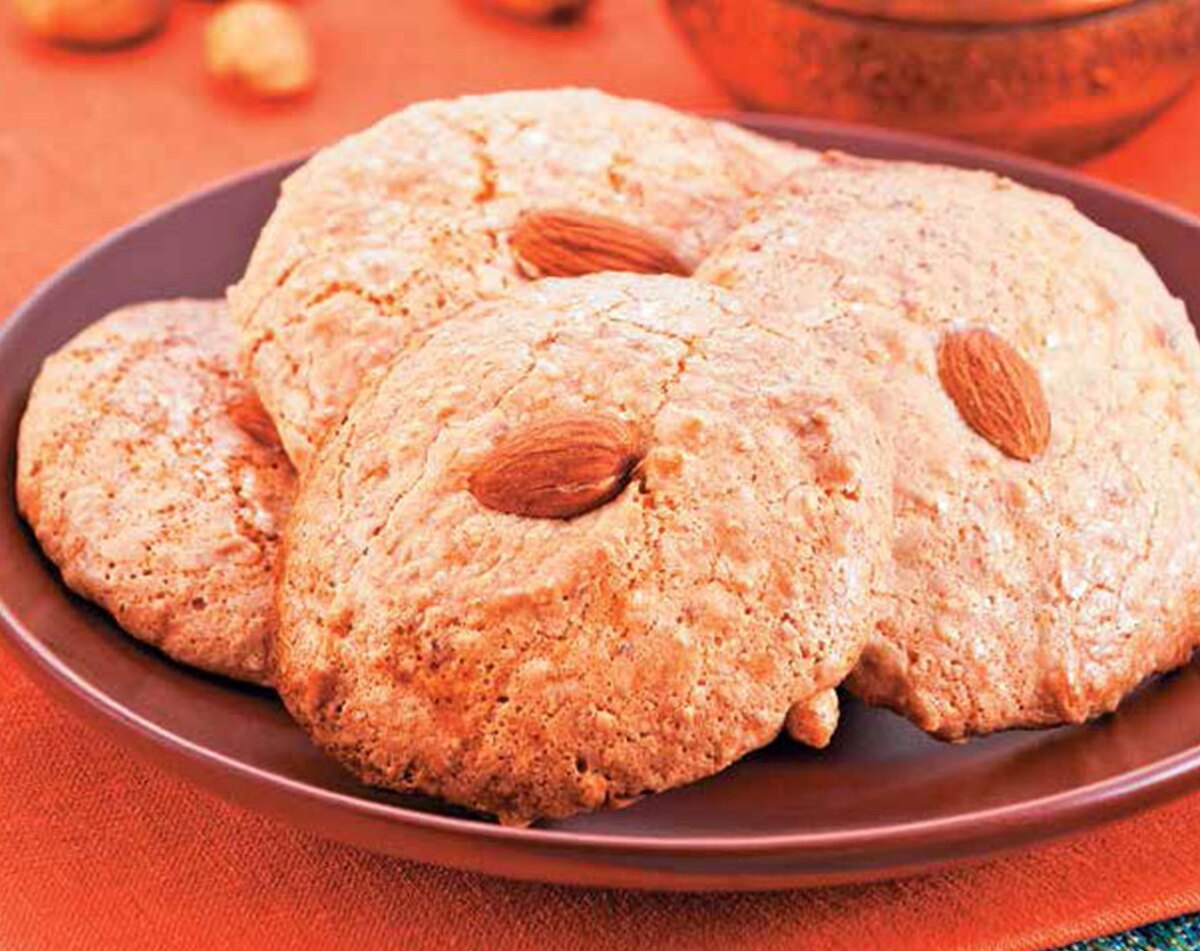 Время приготовления: 1 час Ингредиенты: 6 ст. л. воды 3,25 стакана сахара 3 стакана очищенного миндаля 2 яичных белка 1,25 стакана пшеничной муки 1 ч. л. топлёного масла Приготовление: 1. Воду влить в небольшую кастрюлю, подогреть, всыпать сахар и мешать до полного его растворения. 2. Половину миндаля прокрутить через мясорубку, добавить в сироп. 3. Яичные белки хорошо взбить, помешивая, влить в сироп. Варить на слабом огне 10–15 минут. Снять с огня, охладить до комнатной температуры. В массу частями всыпать муку, перемешать до однородности. 4. Противень смазать маслом, сверху присыпать мукой. Ложкой сформировать из теста небольшие лепёшки весом 30–40 г. Выложить их на противень на некотором расстоянии друг от друга. В центр каждой лепёшки поместить целый миндальный орех. 5. Выпекать в разогретой до 180 °C духовке в течение 30 минут. 6. Охладить, подавать к столу. Приятного чаепития!! Подписывайтесь на наш канал- впереди еще много вкуснейших рецептов!! Благодарим за внимание!!